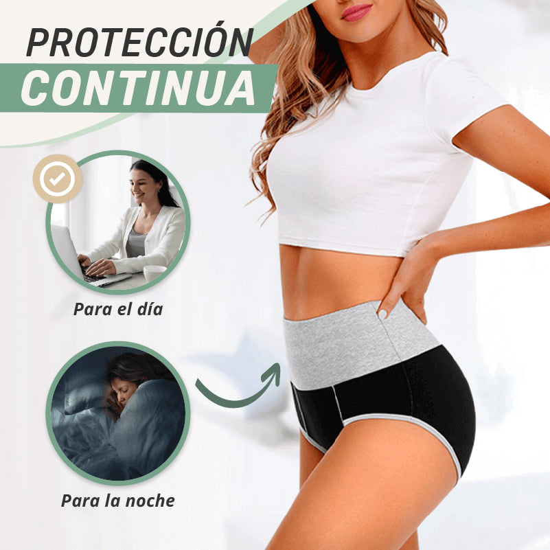 Disfruta de una protección continua sin importar el momento. En el día, su diseño ligero y flexible te permite moverte con total comodidad, sin sensación de humedad ni restricciones. Por la noche, su absorción y cobertura completa evitan fugas mientras duermes, permitiéndote descansar profundamente sin interrupciones. Nuestras bragas están pensadas para acompañarte las 24 horas, brindándote bienestar y seguridad en cada uso.
