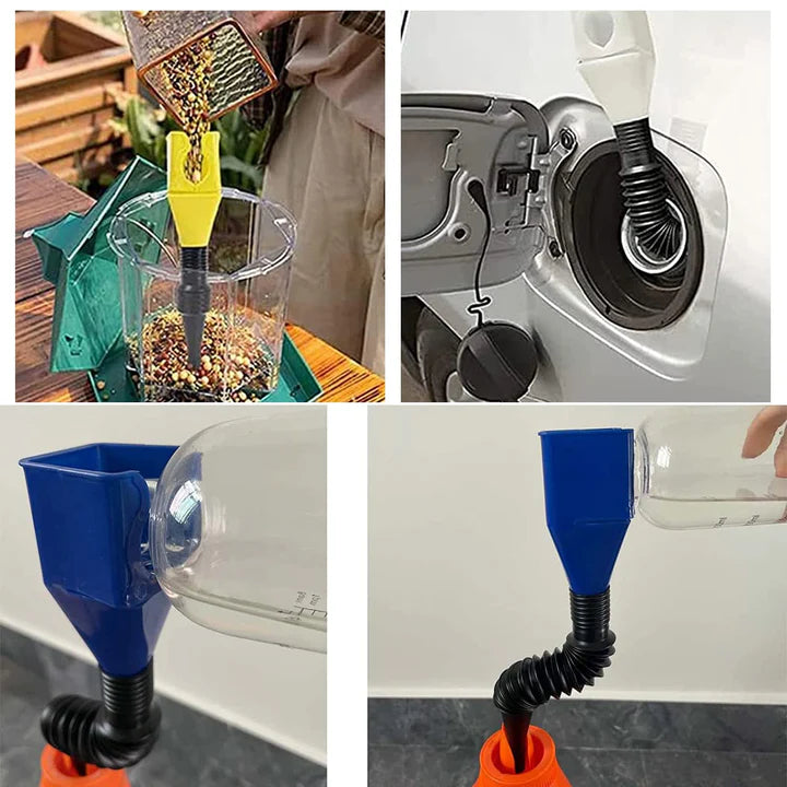 Olvídate de los derrames y el desorden al llenar líquidos en tu vehículo. Nuestro embudo flexible asegura un flujo controlado, evitando salpicaduras y desperdicios, incluso con líquidos viscosos como el aceite del motor.